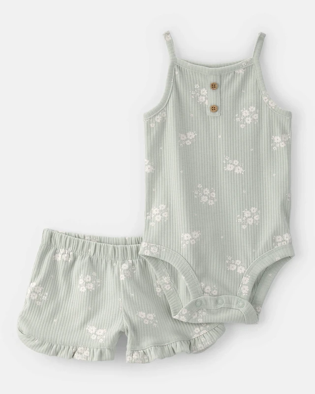 Baby Girl 2-Piece Floral Sleeveless Bodysuit & Short Set - Green