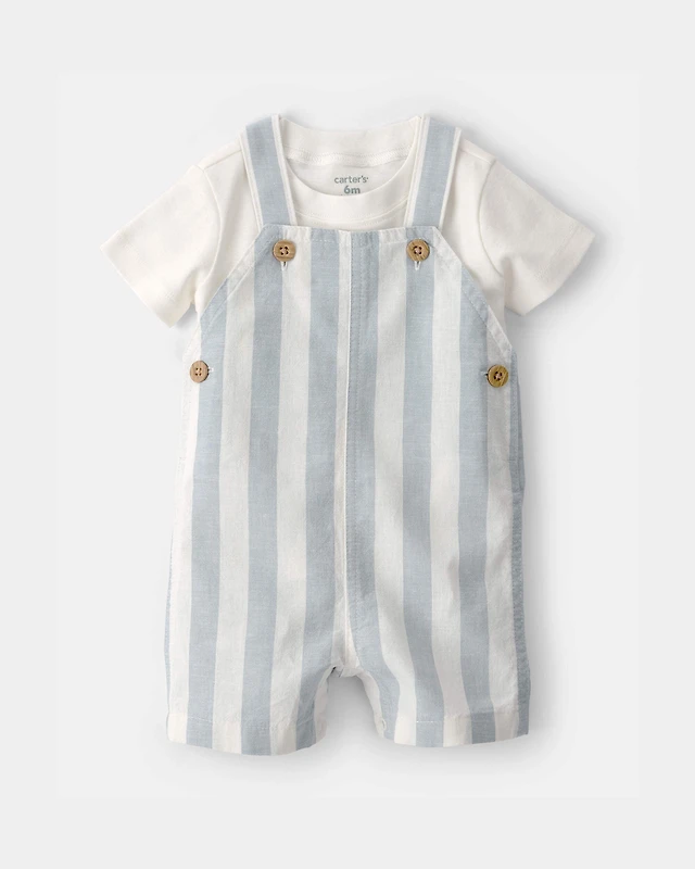 Baby Boy 2-Piece Stripe Romper Set - Blue/Ivory