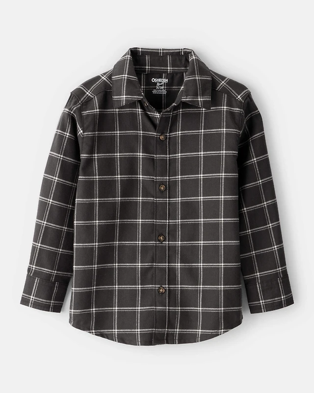 Toddler Boy Plaid Cotton Long-Sleeve Button-Down Shirt - Black