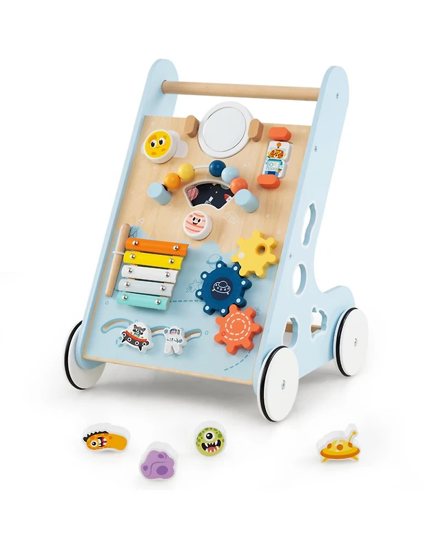 Gouun 2-in-1 Toddler Wooden Baby Push Walker with Multi-Activity Center
