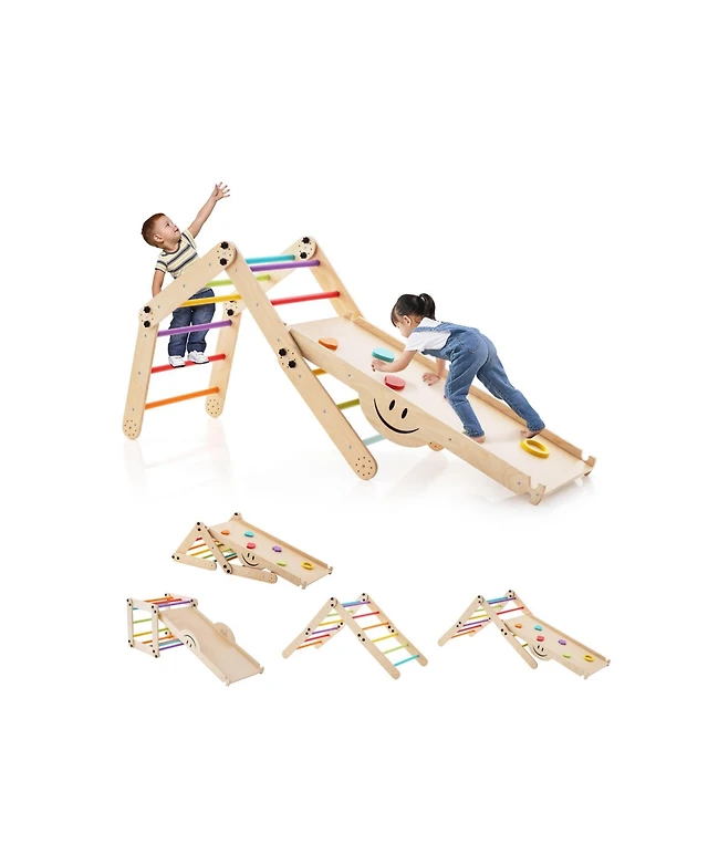 Costway Baby Foldable Wooden Gym with 3 Wooden Teething Toys