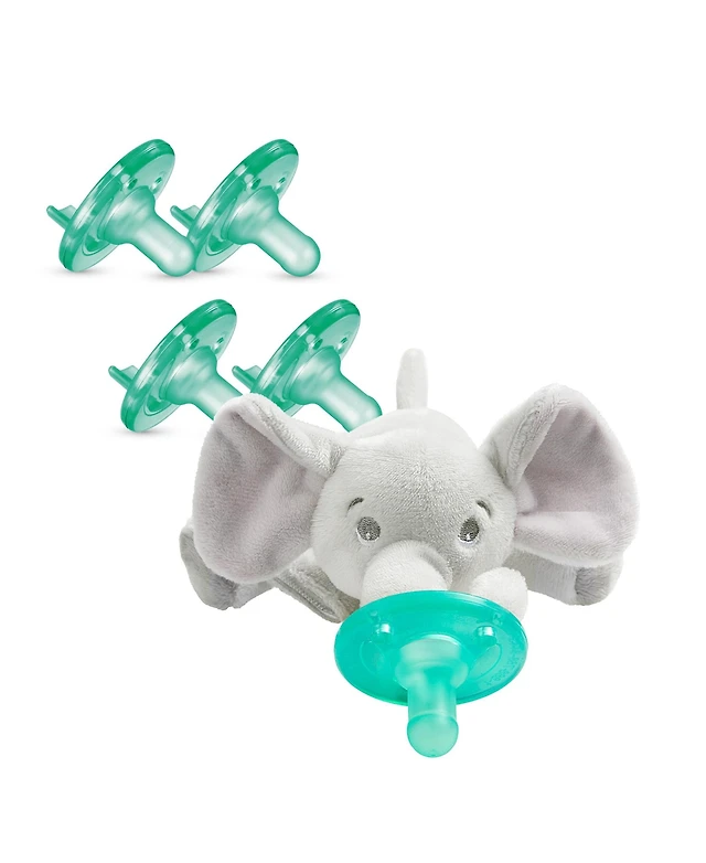 Philips Avent Soothie Snuggle, 0m+ Elephant + Soothie Green 4 Pack