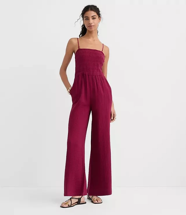 LOFT Beach Triple Cloth Smocked Jumpsuit