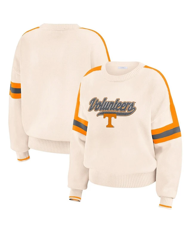 Wear by Erin Andrews Women's Cream Tennessee Volunteers Chenille Woven Patch Stripe Pullover Sweatshirt