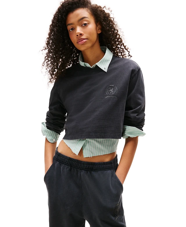 Tommy Jeans Women's Cotton Notch-Collar Relaxed Crop Crest T-Shirt
