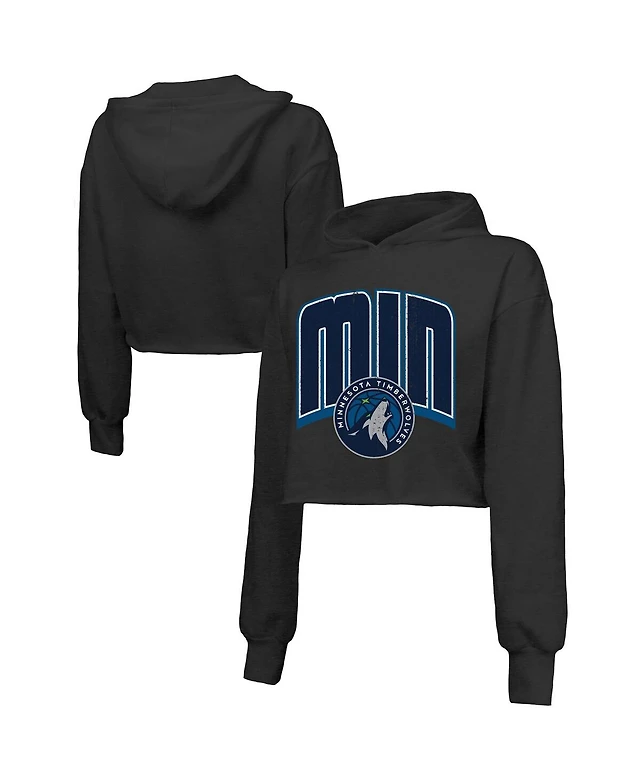 Majestic Women's Black Minnesota Timberwolves Tri-Blend Cropped Pullover Hoodie