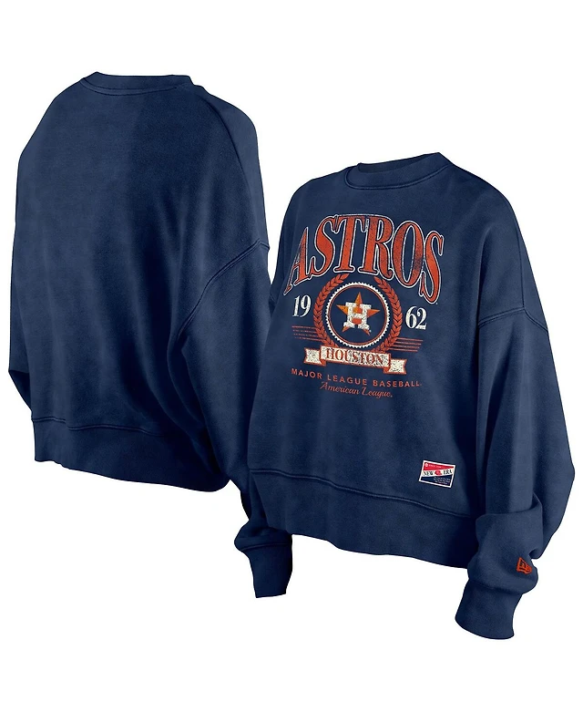 New Era Women's Navy Houston Astros Throwback Boxy Enzyme Wash Fleece Crewneck Pullover Hoodie