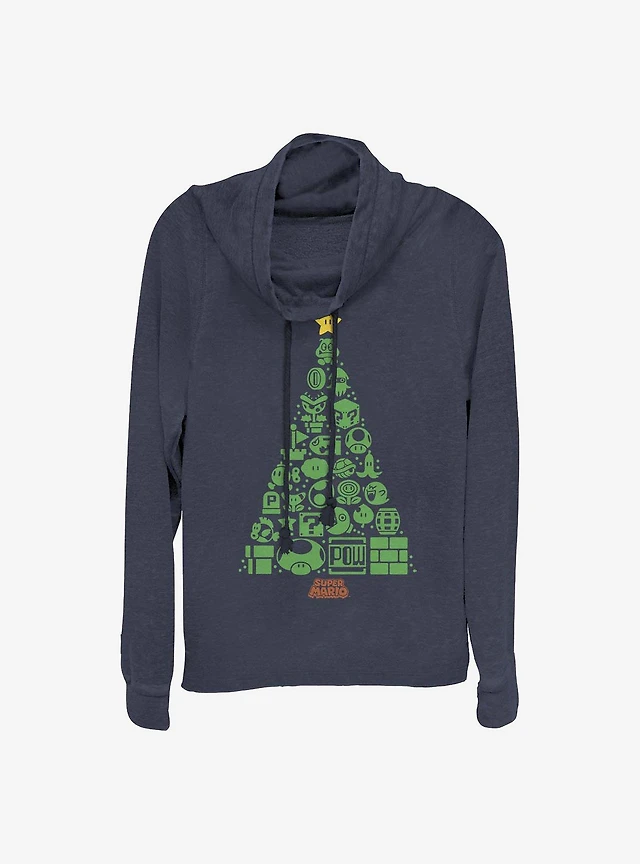 Super Mario Trees A Crowd Holiday Cowl Neck Long-Sleeve Girls Top