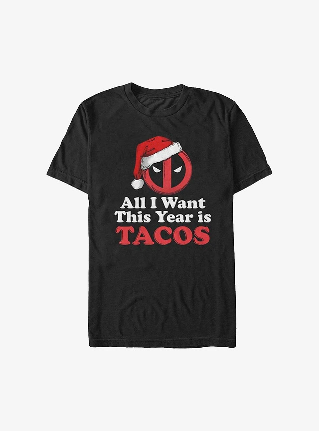 Marvel Deadpool All I Want This Year Is Tacos Holiday T-Shirt