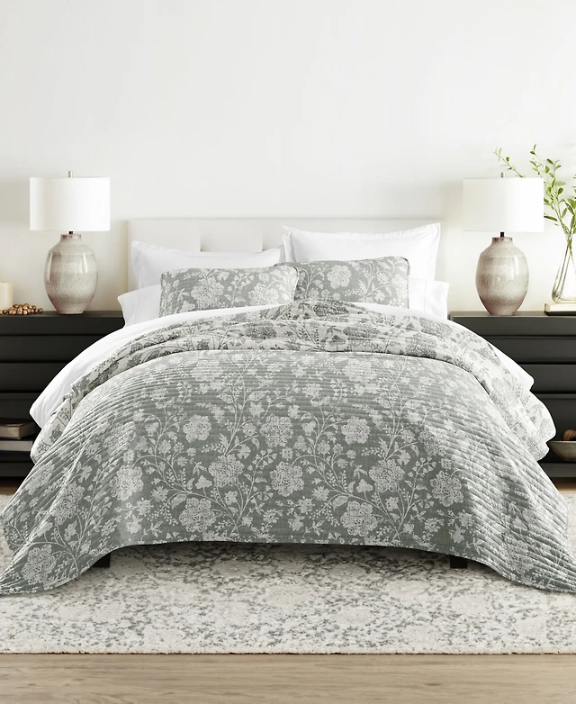 ienjoy Home Textured Floral Reversible 3-Pc. Quilt Set, Full/Queen