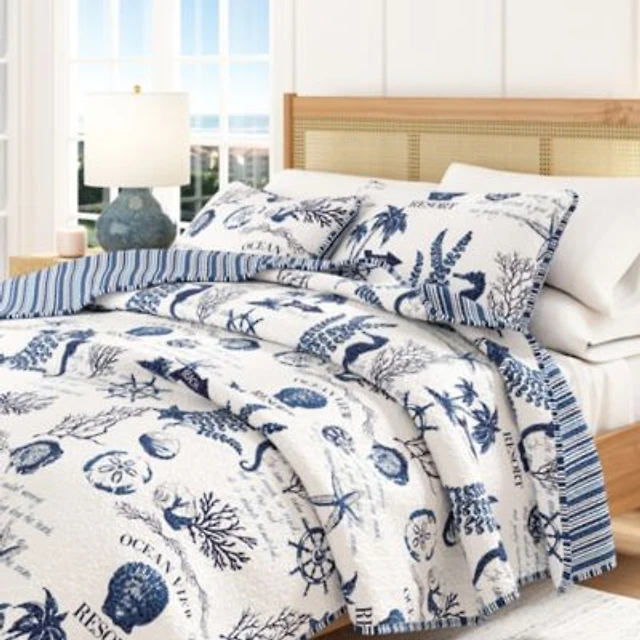 Linery & Co. Cotton Stitched Reversible Coastal Quilt and Sham Set