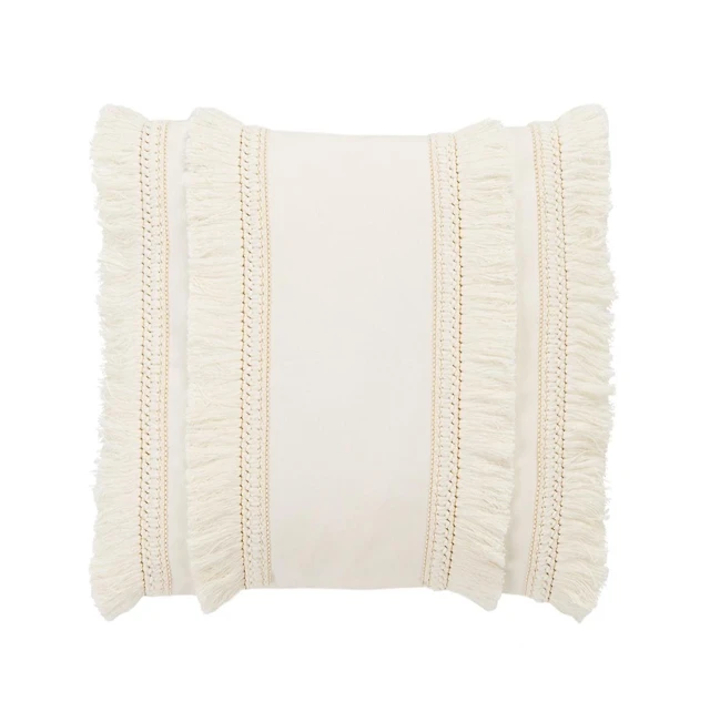 Newport White Textured Throw Pillow Solid Color With Tassels Luxury Decorative Accent Covers For Couch And Bed