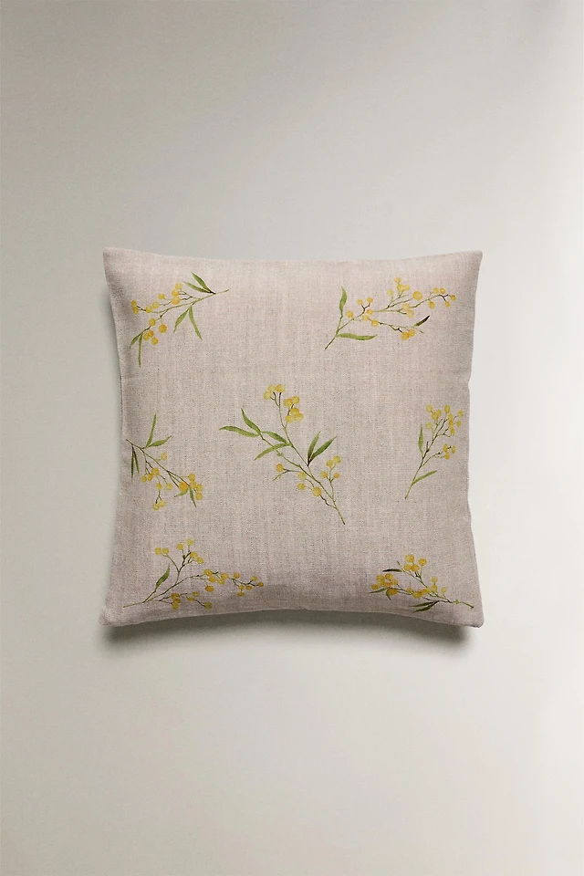 LINEN AND COTTON THROW FLORAL PILLOW COVER