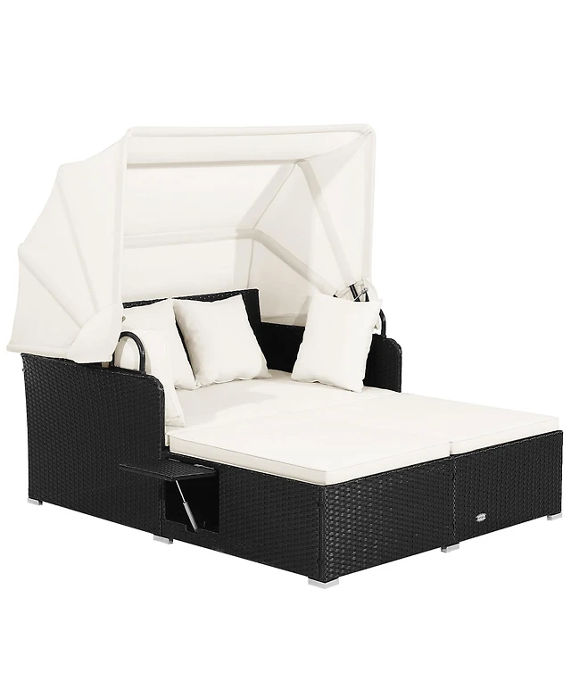 Patio Rattan Daybed Lounge Retractable Top Canopy Side Tables Cushions