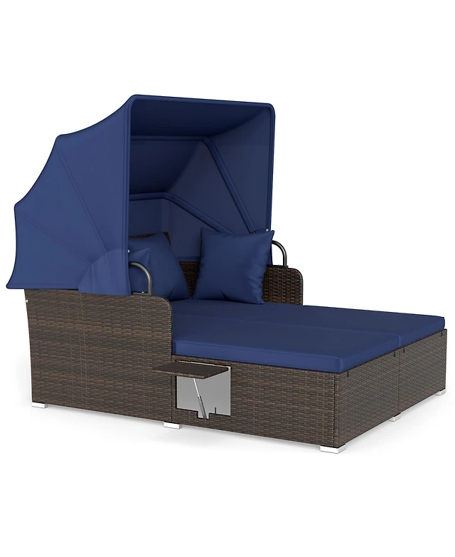 Gouun 4-Piece Patio Rattan Furniture Set with Removable Cushions and Glass Table