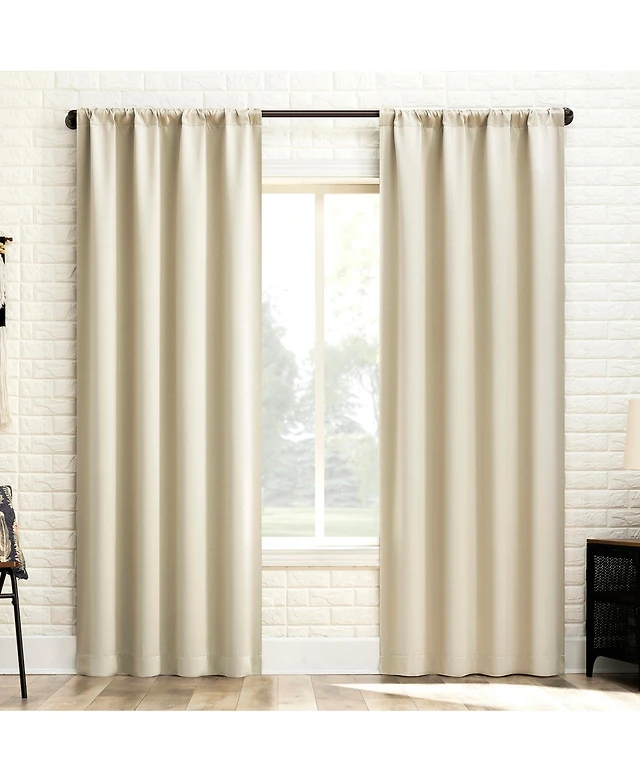 Half Price Drapes Natural Light Beige Grommet Thermal Cross Linen Weave Blackout Curtain