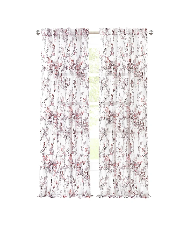 Kate Aurora 2 Pack Floral Leaf Embroidered Grommet Sheer Curtains - 38 in. W x 84 L, Linen