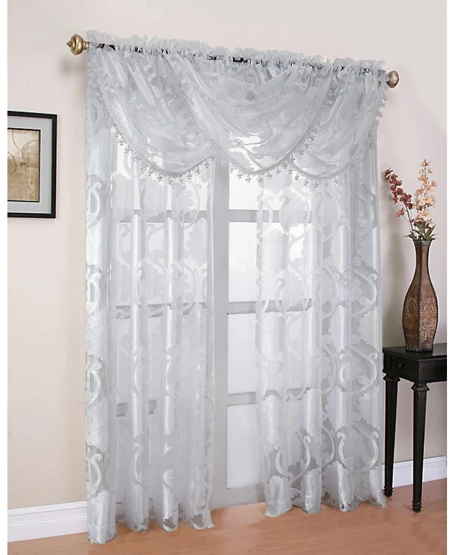 Kate Aurora Custom Scroll Sheer Voile Waterfall Window Curtain Valances - 57 in. W x 37 L