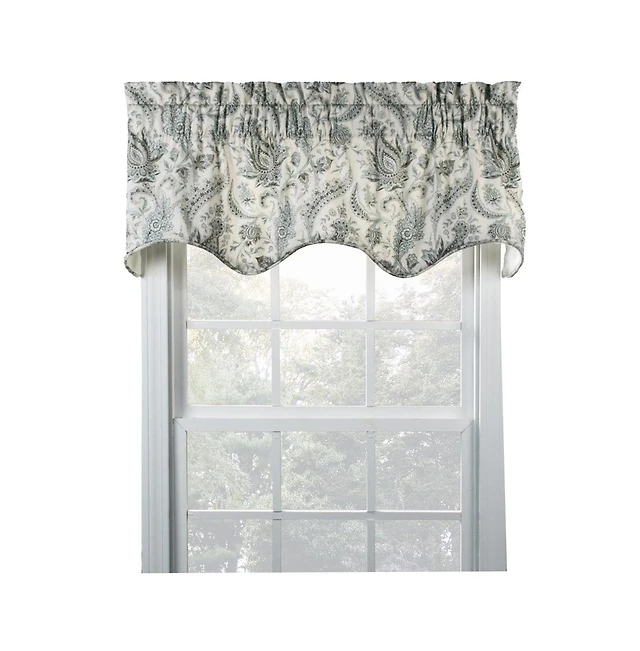 Ellis Curtain Victoria Park Toile High Quality Room Darkening Solid Color Lined Scallop Window Valance - 70 x15" Black