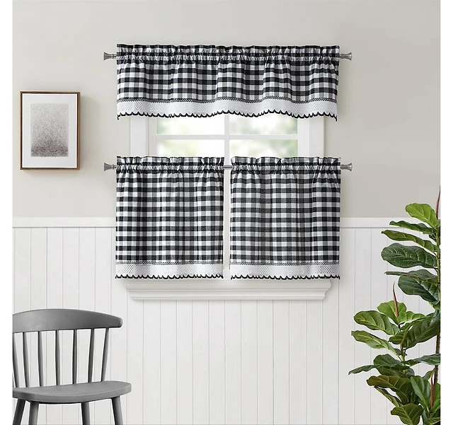 Kate Aurora Chevron Sunflower Complete Cottage Kitchen Curtain Tier & Valance Set