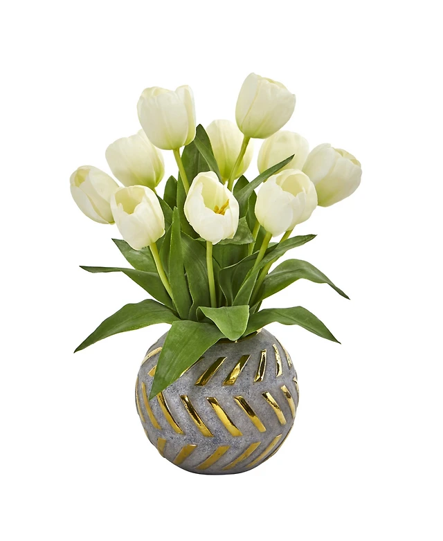 Nearly Natural 13in. Ginger Artificial Plant in Gold and Cream Elegant Vase