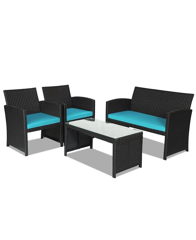 Sugift 4 Pieces Rattan Patio Furniture Set with Weather Resistant Cushions and Tempered Glass Tabletop