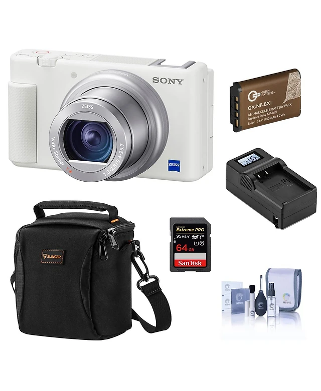 Sony Zv-1 Compact 4K Hd Digital Camera, White Bundle with Sony Shooting Grip/Tripod, 64GB Uhs-ii Sd Card, Bag, Mic, Flexible Tripod, Extra Battery, Ch