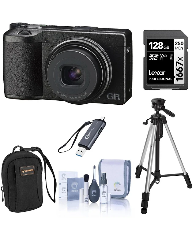 Ricoh Gr IIIx Compact Digital Camera, Bundle with 128GB Memory Card with Reader, Camera Bag, Tripod, Includes Cleaning Accessories