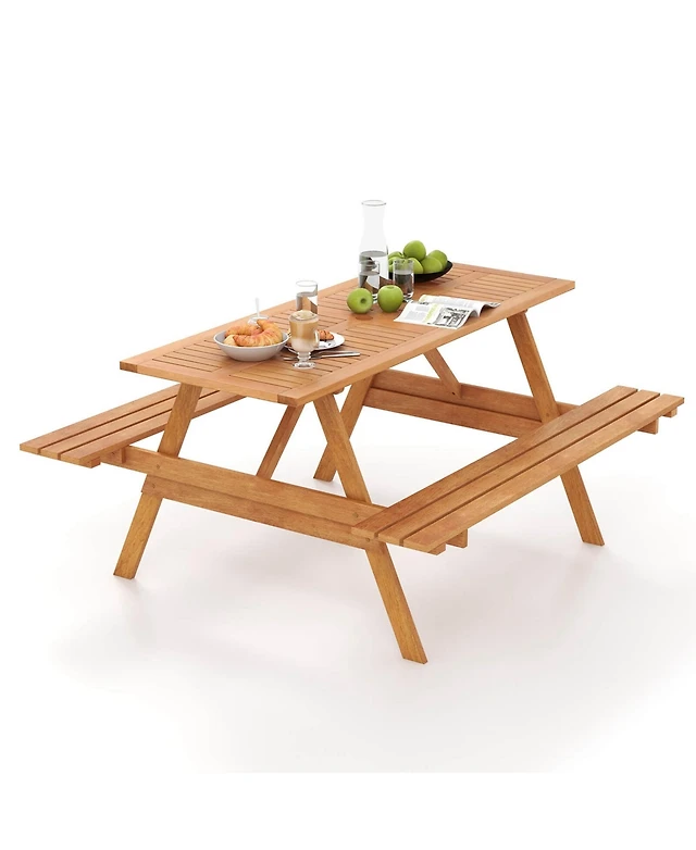 Slickblue Outdoor Picnic Bench Set Solid Acacia Wood Patio Rectangular Benches
