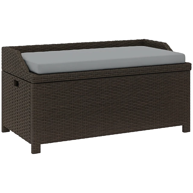 Outsunny 29 Gallon Outdoor Patio Wicker Storage Bench w/ Cushion