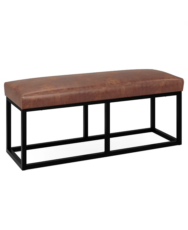 Simpli Home Reynolds Ottoman Bench in Distressed Saddle Brown Pu Leather