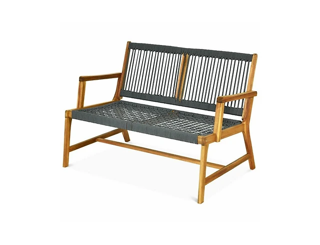 2-Seat Porch Swing Bench Acacia Wood Chair with 2 Hanging Hemp Ropes for Backyard