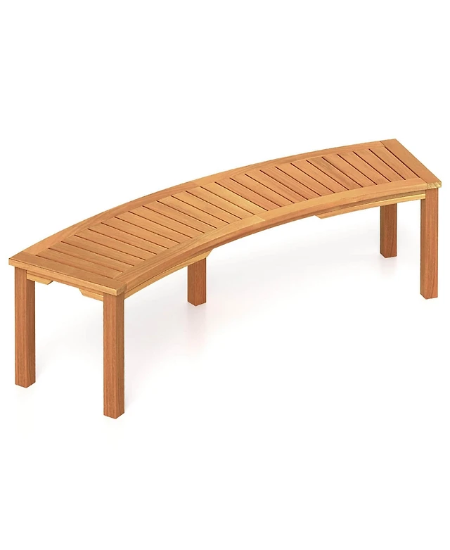 1 Pcs Outdoor Curved Bench with Slatted Seat Solid Acacia Wood for Yard