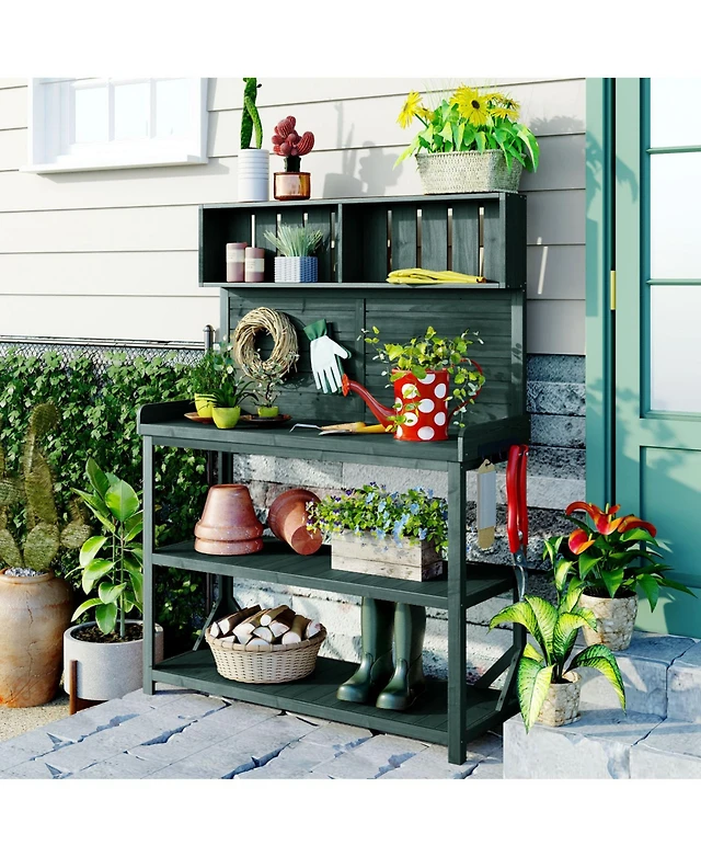 Mondawe Garden Potting Bench Table with Hutch, Patio Storage Workstation