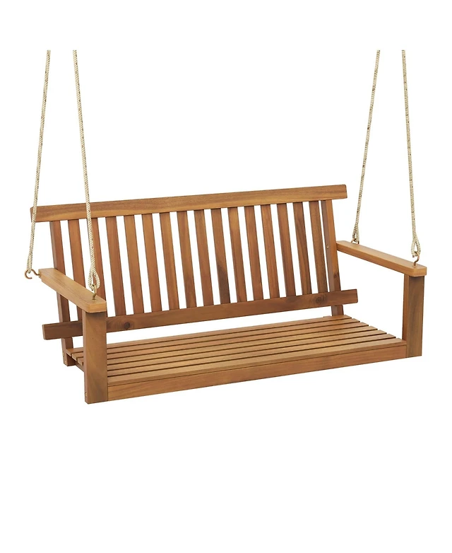 Sugift 2-Seat Acacia Wood Porch Swing Bench with 2 Hanging Hemp Ropes