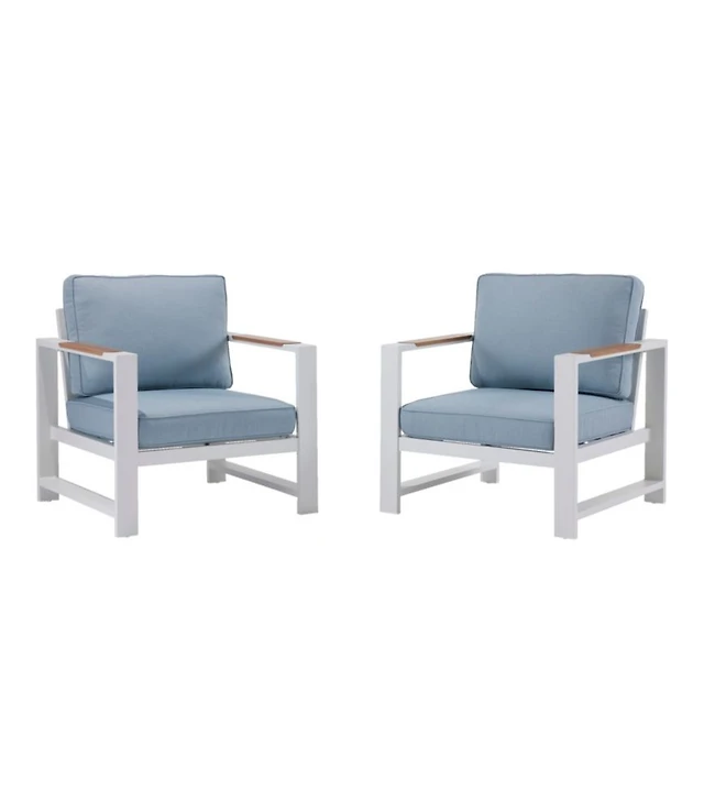 White Aluminum Deep Seating Armchair with Blue Cushions, Set of Two
