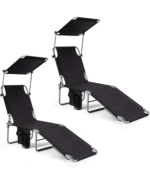 Slickblue 2 Pieces Patio Folding Chaise Lounge Chair Set with Adjustable Back-Brown