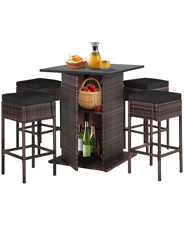Gymax Outdoor Bar Stools Set of w/Cushions and Backrests for Balcony Garden Poolside
