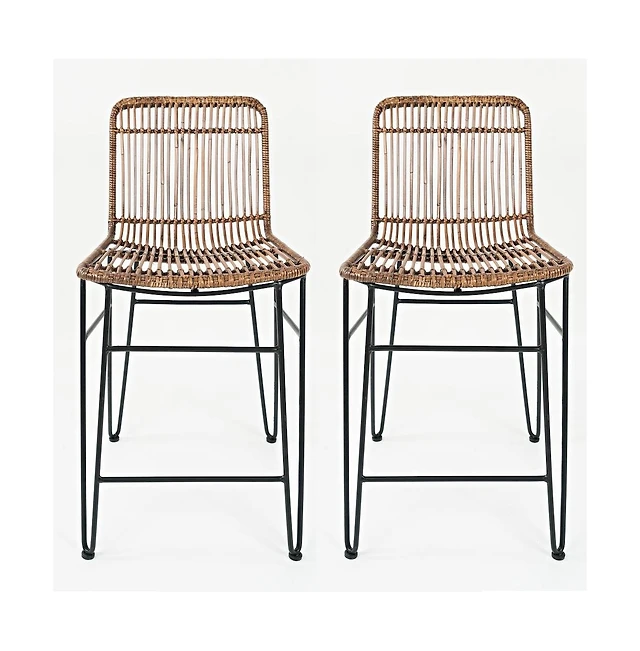 Sugift Patio Bar Stools Set of Two with Rattan Seat and Metal Back