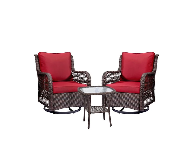 gaomon Idealhouse 3 Pieces Outdoor Wicker Swivel Rocker Patio Set, 360 Degree Swivel Rocking Chairs Elegant Wicker Patio Bistro Set with Premuim Cushi