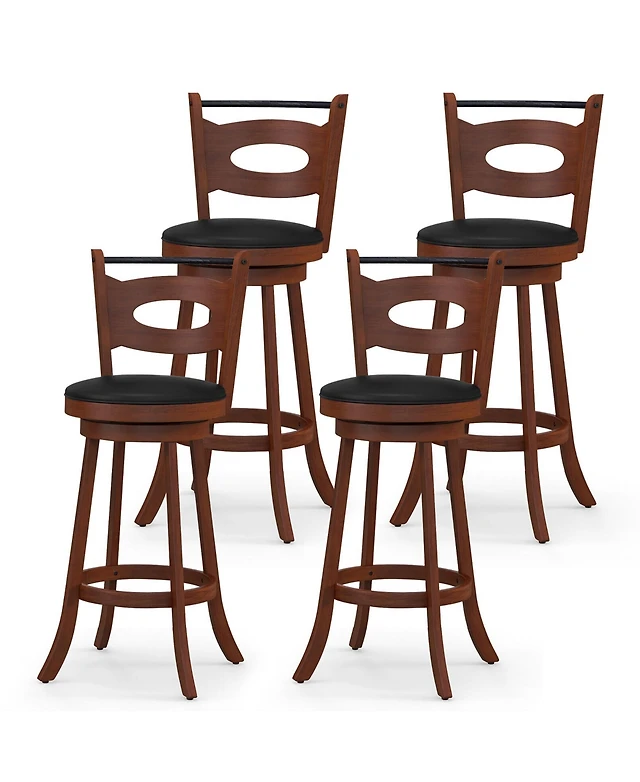 Gymax 4PCS 360°; Swivel Bar Stools Dining Chairs Solid Rubber Wood Leather Padded Brown & Black