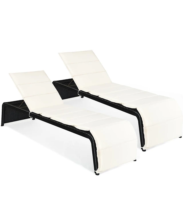 2PCS Patio Rattan Lounge Chair Height Adjustable