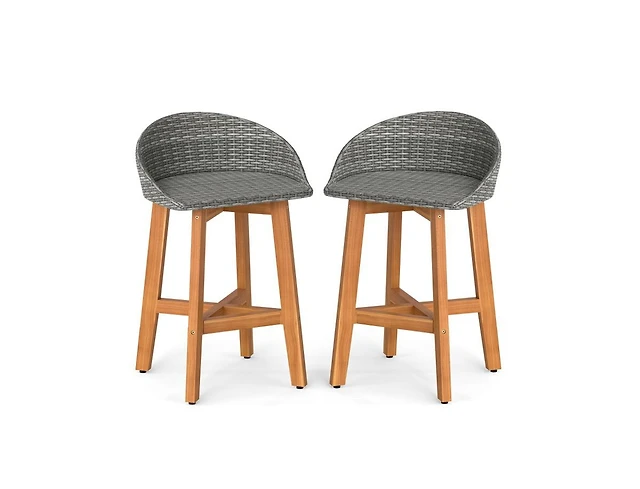 Streamdale Furniture Set Of 2 Acacia Wood Club Chairs With Cushions