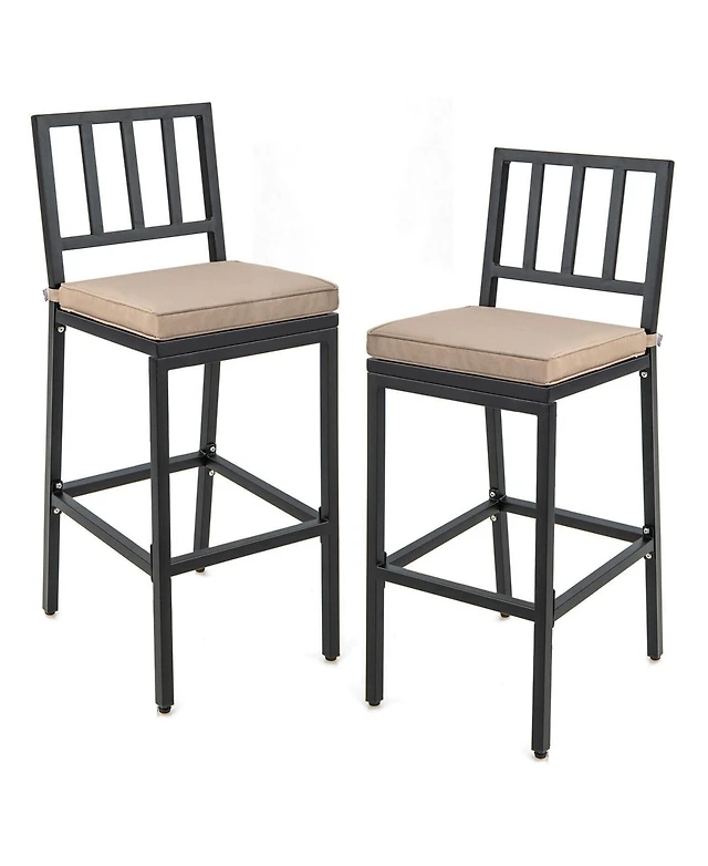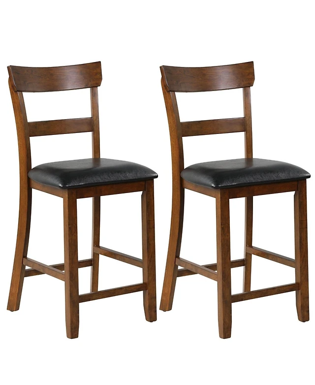 Costway Wooden Bar Stool Set of Chairs with Lvl Rubber Wood Frame, Backrest