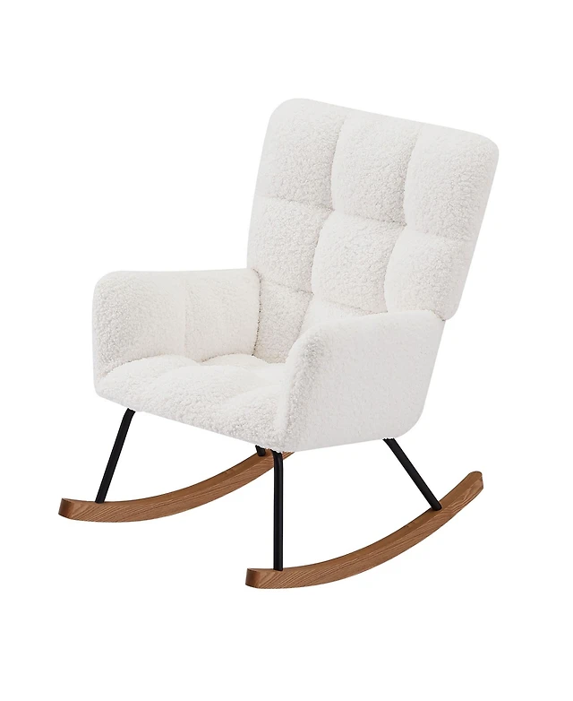 Slickblue Upholstered Nursery Rocking Chair with Natural Wood Frame