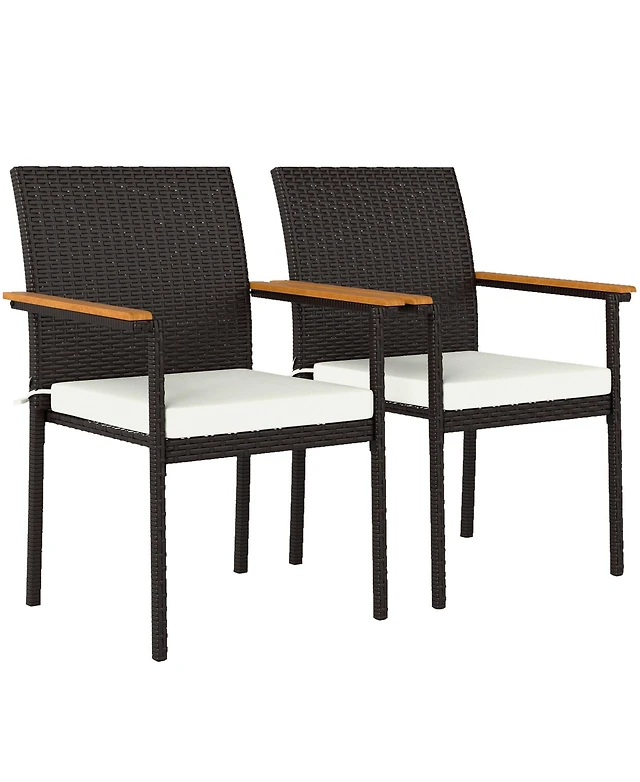 Set of 2 Patio Rattan Arm Dining Chair Cushioned Sofa Furniture