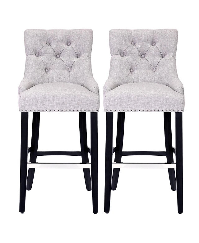 Sugift 2 Pieces 29 Inch Velvet Bar Stools Set with Tufted Back and Footrests