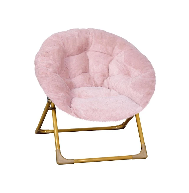 Io Kid'S Folding Saucer Chair With Cozy Faux Fur Upholstery And Metal Frame For Playroom, Bedrooms, Nursery More