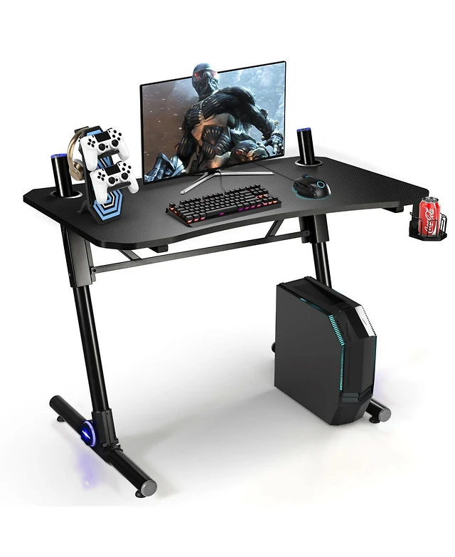 Costway L-Shaped Gaming Desk with Outlets & Usb Ports Monitor Shelf Headphone Hook