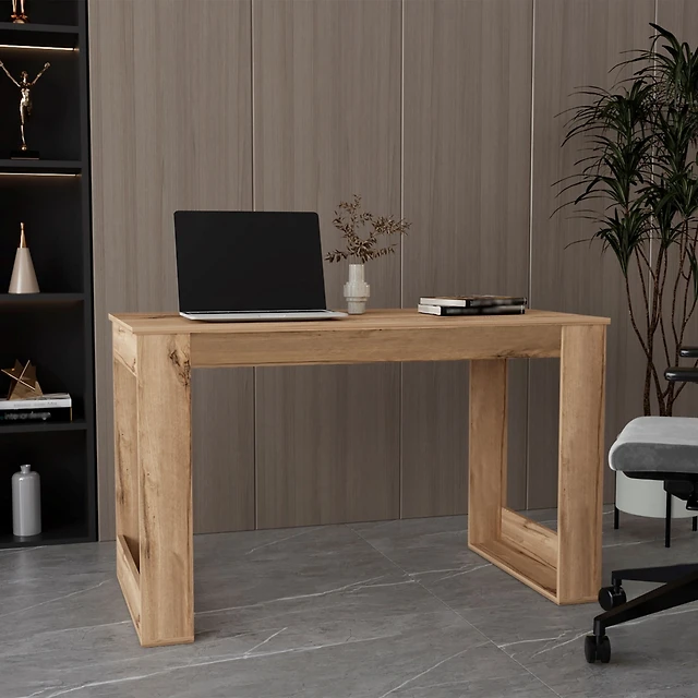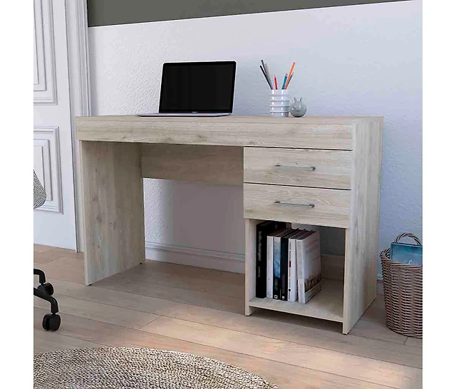 Fm Furniture Sanders Computer Desk in Melamine with Open Storage, Natural Oak